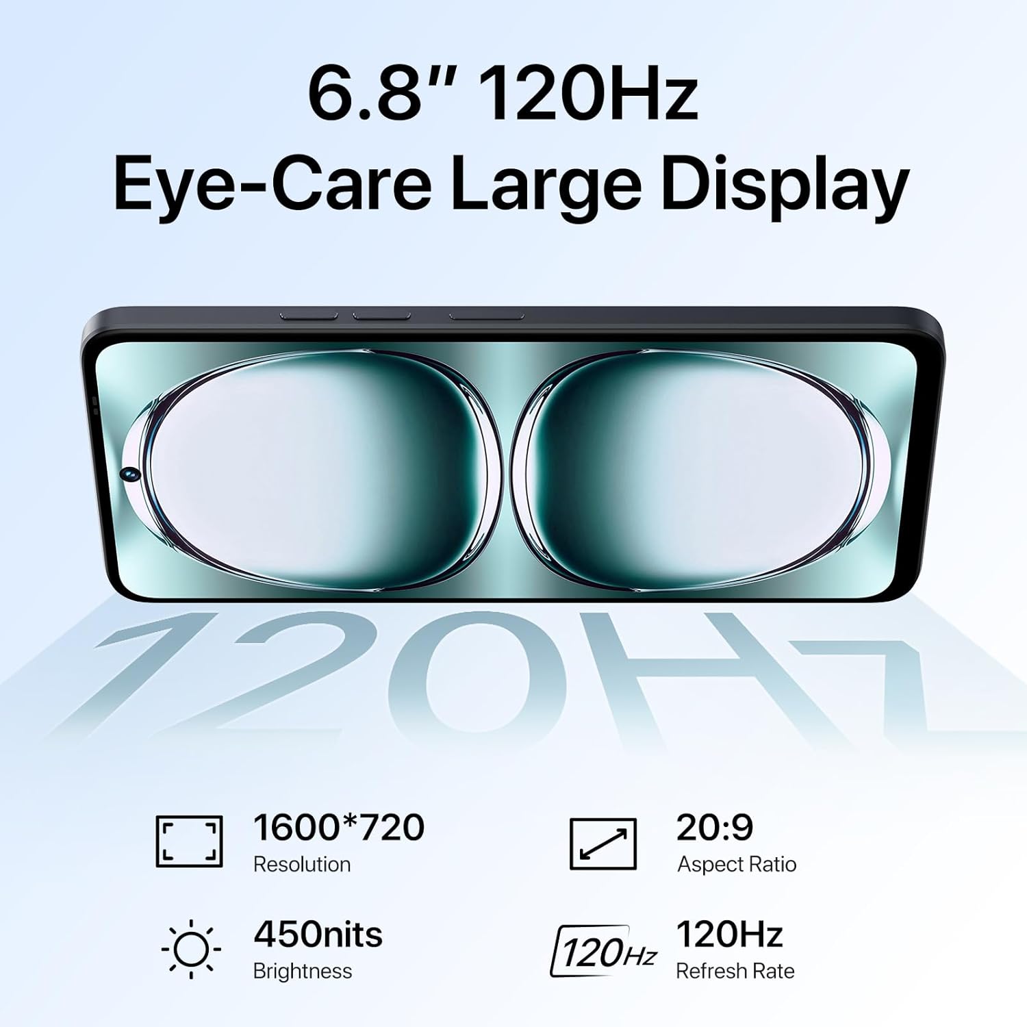 𝟔.𝟖”𝐇𝐃+𝐃𝐢𝐬𝐩𝐥𝐚𝐲& 𝟏𝟐𝟎𝐇𝐳 𝐑𝐞𝐟𝐫𝐞𝐬𝐡 𝐑𝐚𝐭𝐞: The UMIDIGI Note 100 unlocked cell phone comes with a surprising 6.8”HD+display. The waterdrop screen design offers 20:9 aspect ratio and 720*1600 resolution. In addition the Note 100 mobile phones also features a 120Hz refresh rate and the screen have 450nit is brightness and even in sunlight.