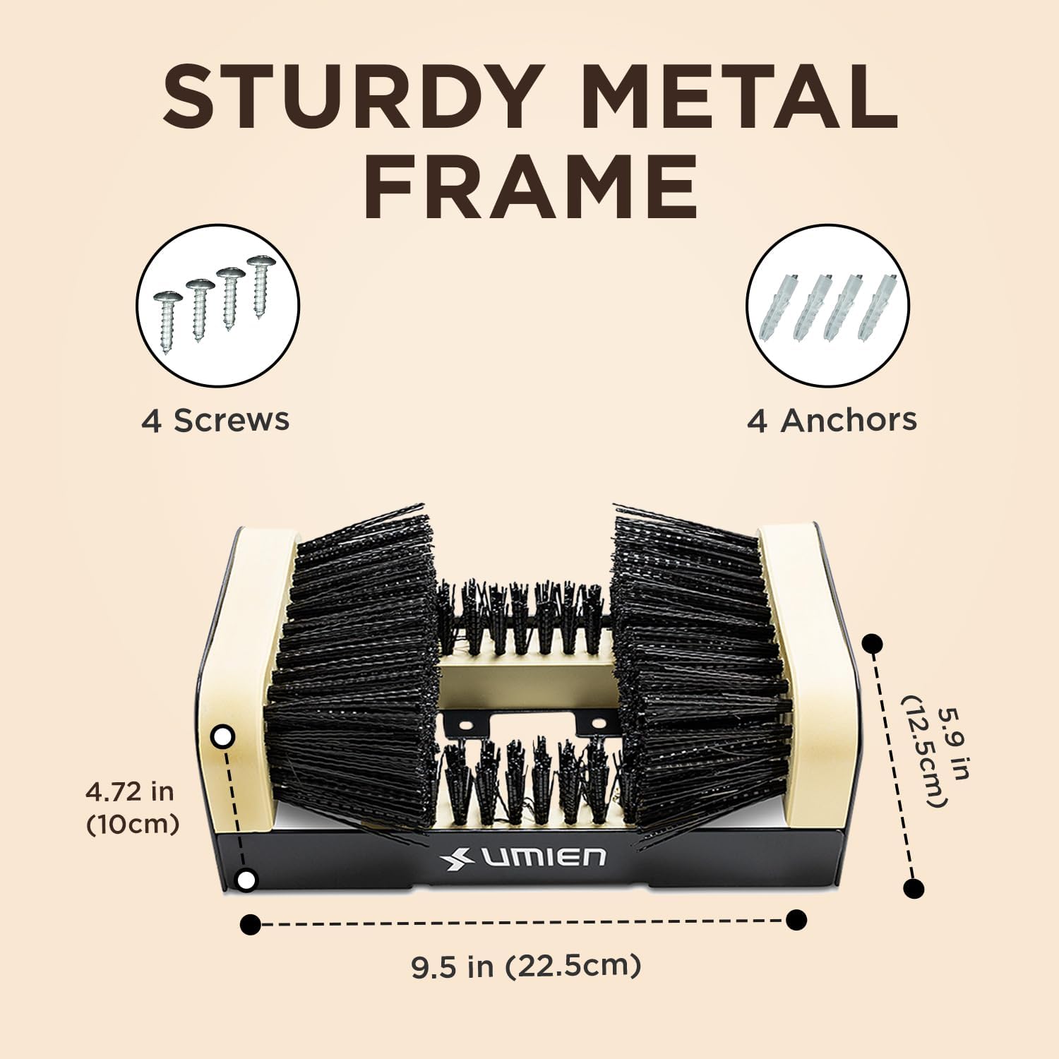 VERSATILE BOOT SCRAPER FOR ALL FOOTWEAR: Features a durable metal frame and stiff bristles perfect for cleaning sneakers, work boots, hiking boots, cowboy boots, rubber boots, and more. Ideal for outdoor or workplace use