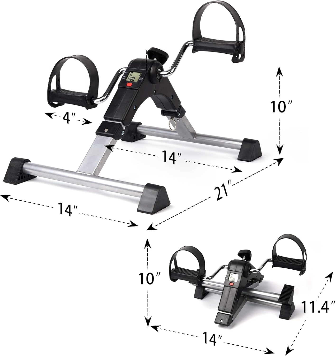 Under Desk Exercise Equipment for Home Workouts – This compact foot pedal exerciser fits under a table, so you can squeeze in a calorie burn while you do office work or watch TV. Simply fold this leg workout equipment for easy storage when not in use.