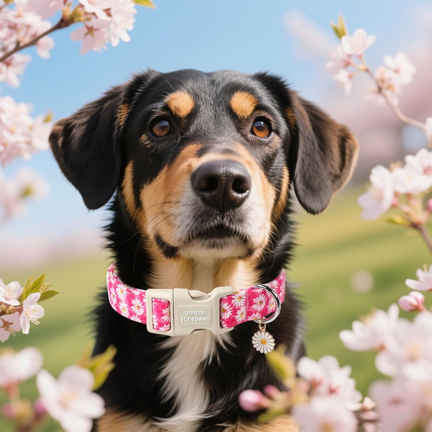 Unique style paws Dog Collar Plastic Buckle with Pendant Rose Daisy Flowers Puppy Collars for Small Medium Large Boys Girls Dogs