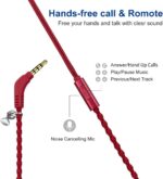 URIZONS Earbuds Bracelet Wired Earphones in-Ear Headphones – Headsets with Microphone Remote for iPhone/Android Devices Fabric Braided Wristband (red)