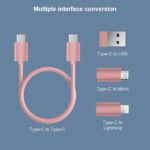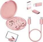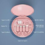 USB Adapter, Micro USB Charging Cable with USB C Lightning Adapter, Lightning to USB C Adapter, Multi Charging Cable Storage Box Contains SIM Card Holder Pink
