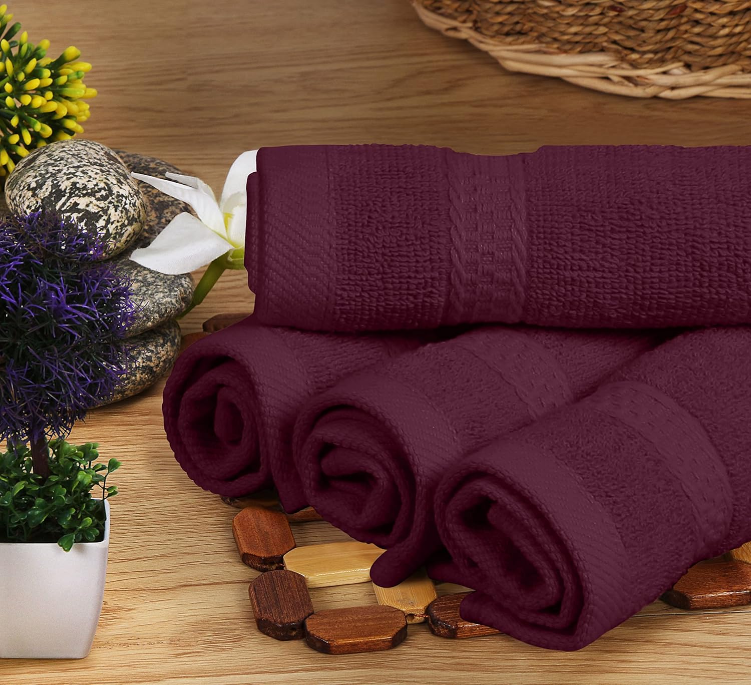 Double Stitched Hemmed Finish- Each towel is finished with a double stitched hems at the border to give them a clean edge while preventing it from unraveling. It also adds to the aesthetics of the towel set.