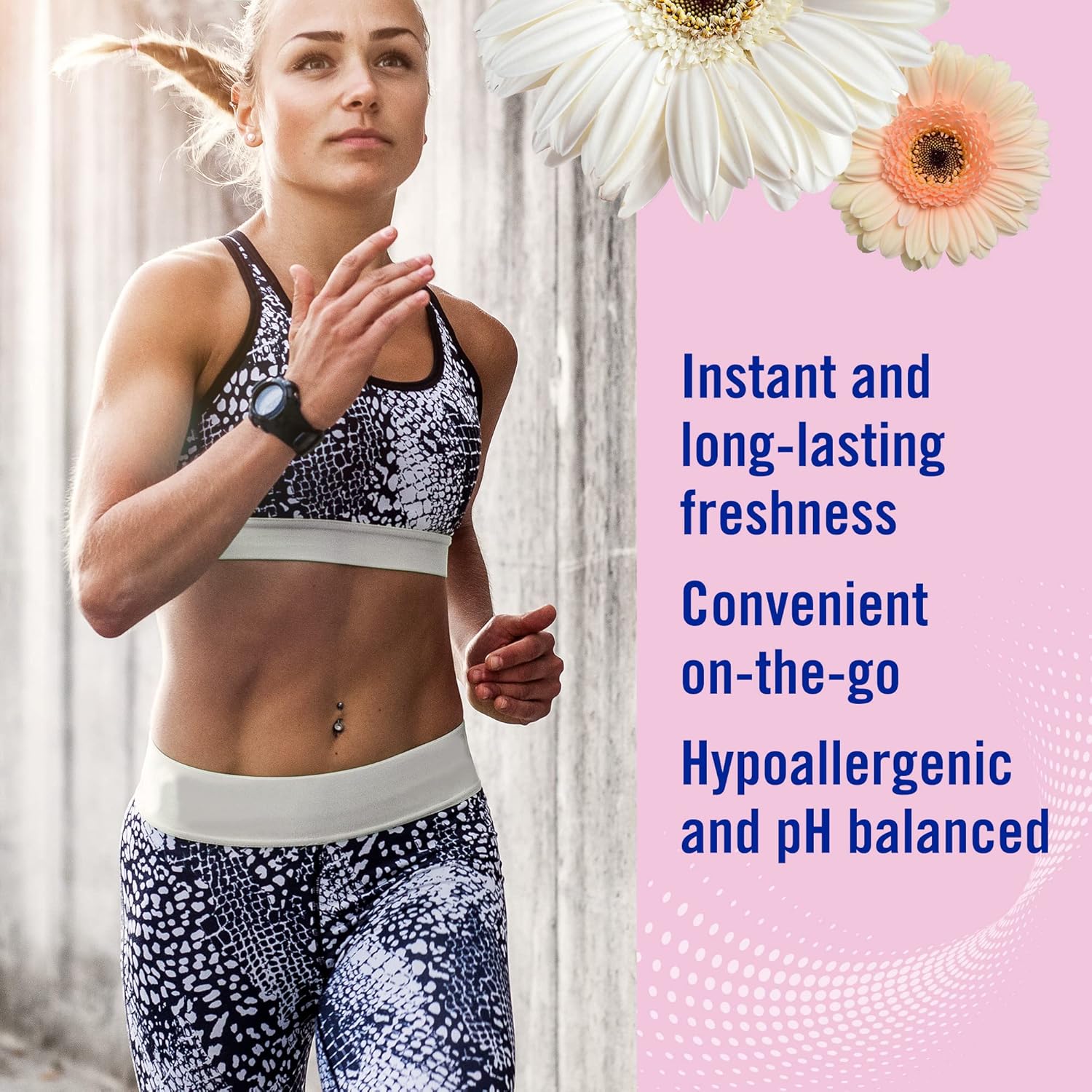 Instant and long-lasting freshness. Non-irritating, hypoallergenic and pH balanced formula. Gynecologist tested.