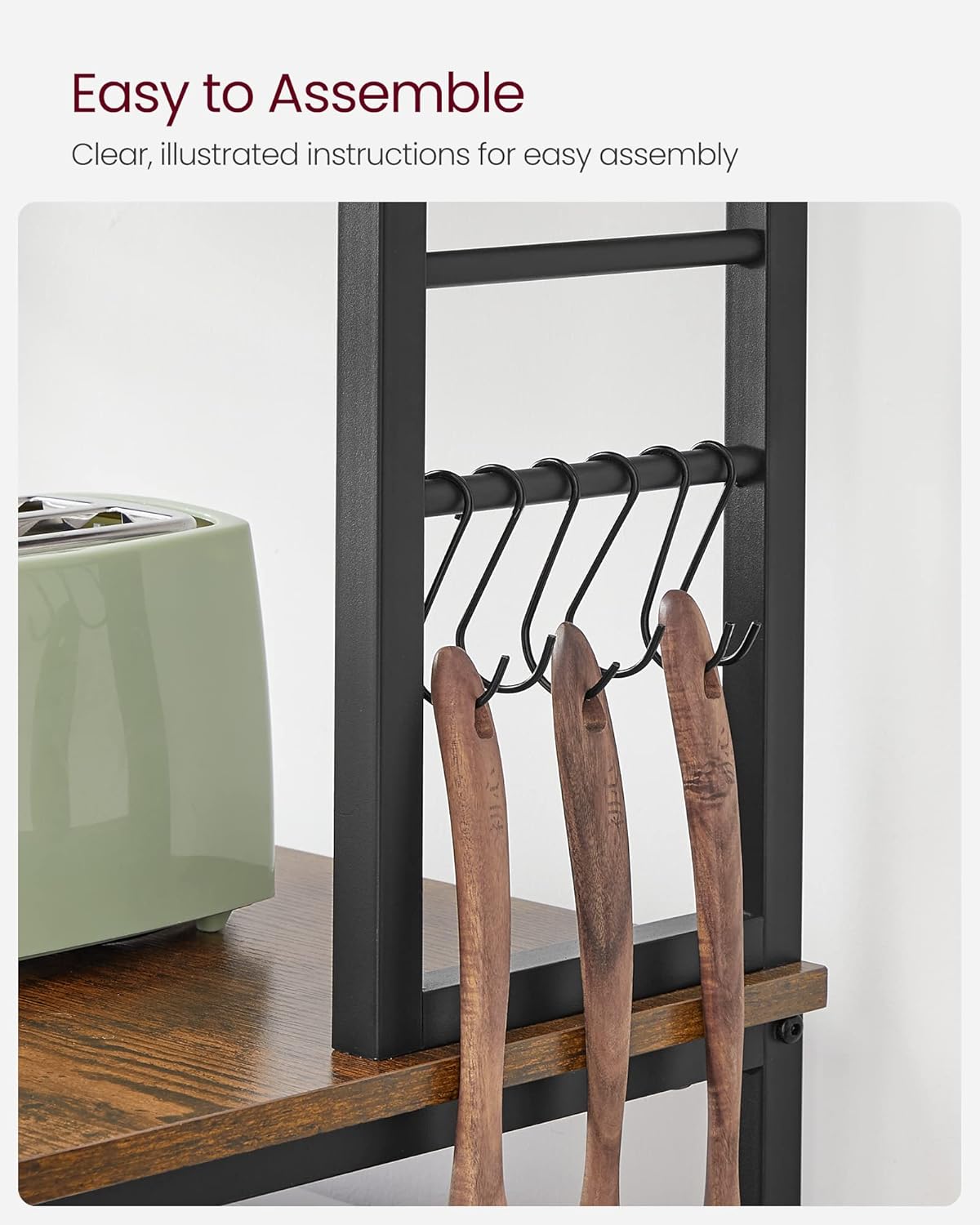 [Solid Construction] Combing a robust steel frame with durable particleboard, this kitchen appliance storage rack is strong and solid to hold your microwave, coffee machine, and other accessories