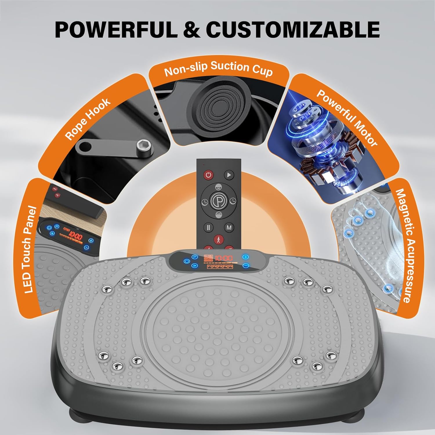 ⭐ BOOSTS METABOLISM & SUPPORTS RECOVERY: The fitness vibration platform also provides a low-impact workout that enhances circulation and metabolism. It helps reduce muscle soreness and relieve chronic pain. Additionally, this exercise equipment supports lymphatic drainage, making it ideal for recovery after injuries.