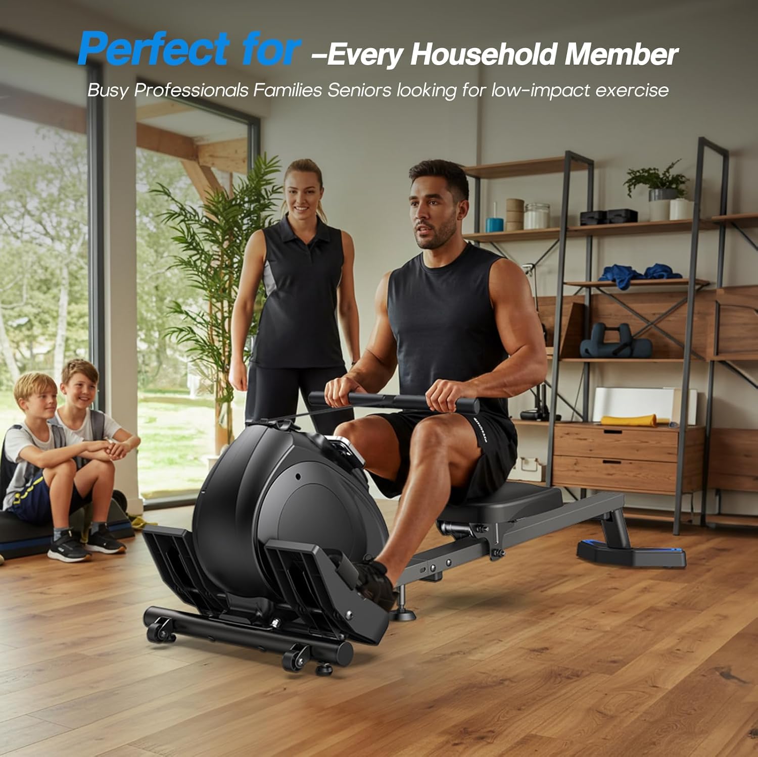 WELLFIT Rowing Machine for Home – Magnetic Rowing Machines 300lbs Capacity, Quiet Compact Smart Indoor Rower with Adjustable Resistance, Work with KINOMAP for Glute,Leg,Arm Muscles Workout Exercise