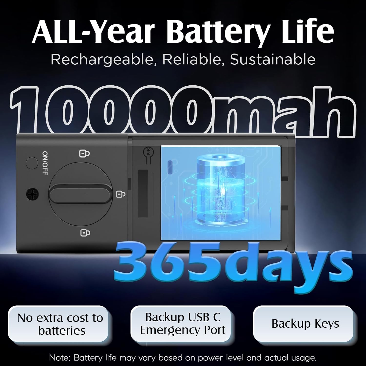 10000mAh Long-lasting Battery: No extra buy batteries, built-in 10000mAh large rechargeable battery, the smart door lock provides 365 days of ultra-long standby, energy-saving, environmentally friendly and trustworthy.