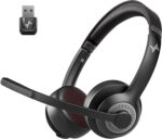 Wireless Headset with AI Noise Cancelling Microphone Bluetooth Headset – Bluetooth V5.2 Headphones with USB Dongle & Mic Mute for Computer/Laptop/PC/iPhone/Android/Cell Phones (Bluetooth+USB Dongle)