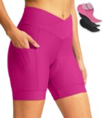 Women’s Bike Shorts 4D Padded Cycling Shorts Crossover Waist Biking Shorts with Pockets Bicycle Riding