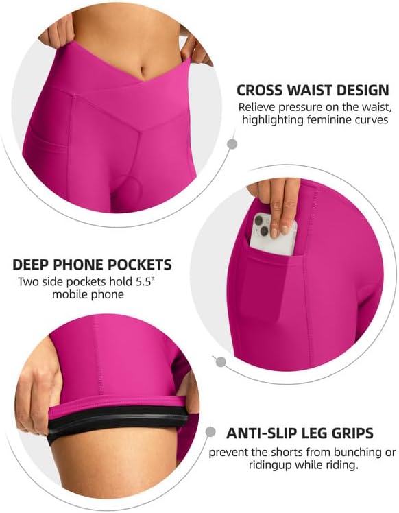 Women’s Bike Shorts 4D Padded Cycling Shorts Crossover Waist Biking Shorts with Pockets Bicycle Riding
