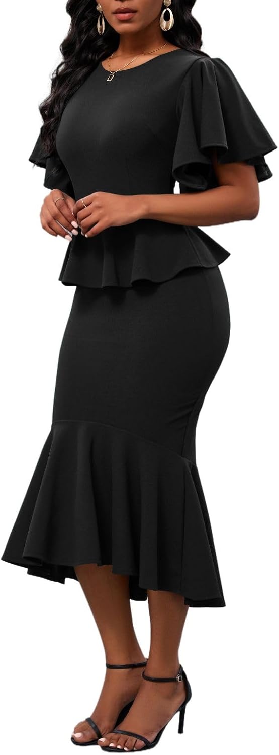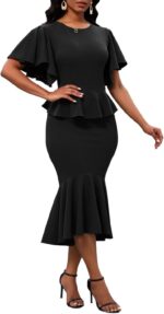Womens Summer Ruffle Short Sleeve Fishtail Dress Evening Cocktail Formal Peplum Midi Mermaid Dresses Elegant