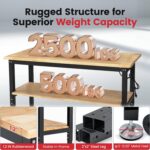 Work Table for Garage 60 Inch Workbench with Storage Adjustable Height Rubber Wood Tabletop Work Bench with Power Outlets Pegboard Pad for Cutting Wood Shop Woodworking Home Office
