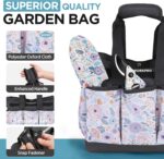 IMPROVED GARDEN STORAGE BAG- This garden bag is made of high quality 600D polyester fabric lining with soft materials, which is very soft and durable. The bottom of this bag is reinforced with PE board, keeping the tool bag upright, more stable and not deformed. The anti-slip strap handle is comfortable and soft, reducing fatigue when carrying. Interior size of 12”x 12” x 6” and multi-pockets design provides enough space for storage