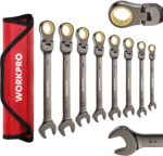 WORKPRO 8-piece Flex-Head Ratcheting Combination Wrench Set, SAE 5/16-3/4 in, 72-Teeth, CR-V Constructed, Nickel Plating with Organizer Bag