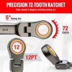 The 72-teeth ratchet gear inside the box end requires a 5-degree working swing arc only, enabling an easy and fast operation