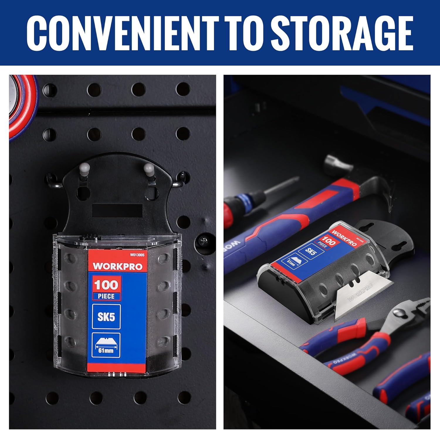 WORKPRO Utility Knife Blades, SK5 Steel, 100-Pack with Dispenser