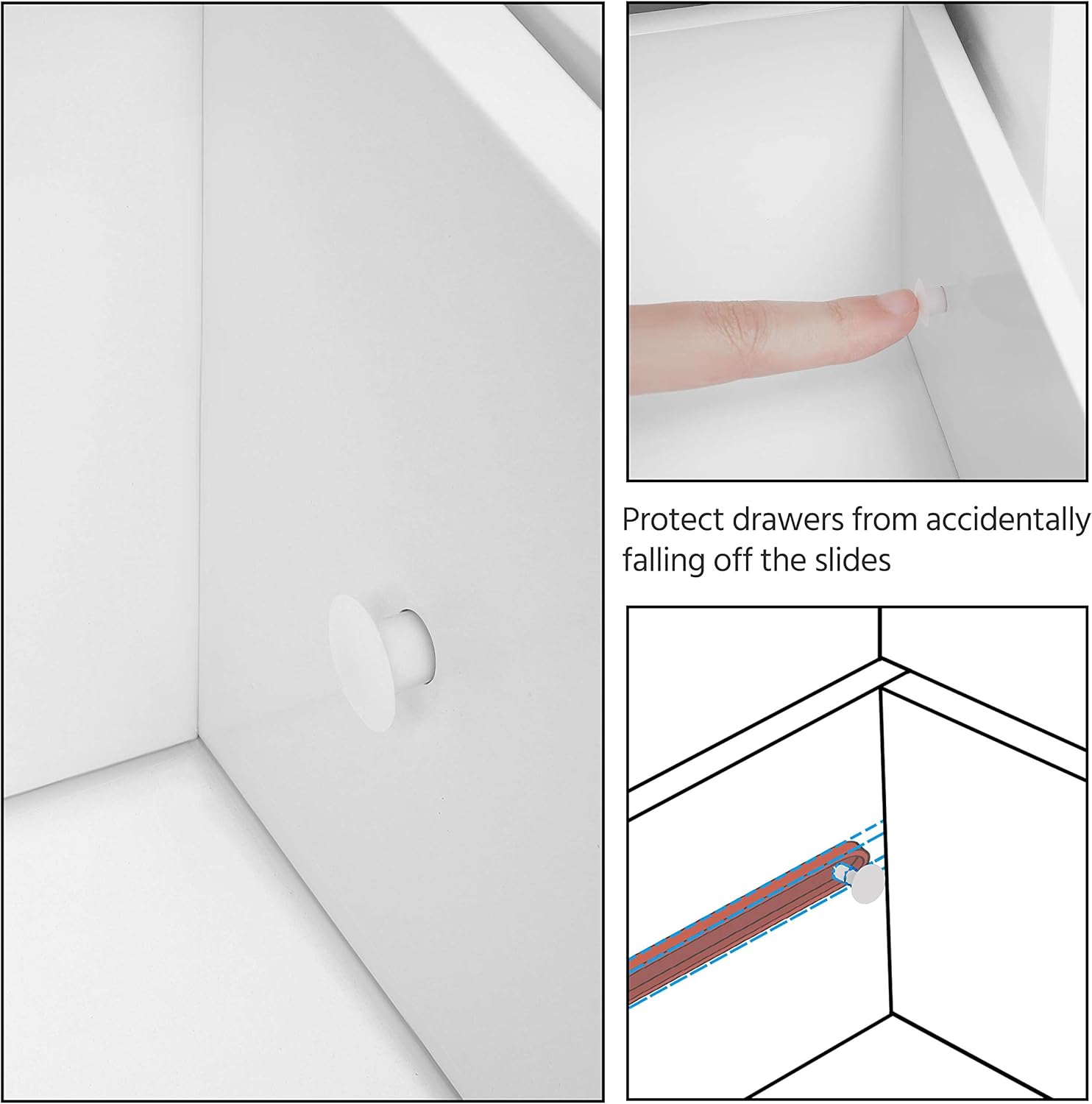 Ideal space saver: Four drawers with cutout handles and one cupboard with a customizable shelf for you to organize different items like cosmetics, toiletries, towels, toilet paper, etc. A great option for tucking away bathroom clutter