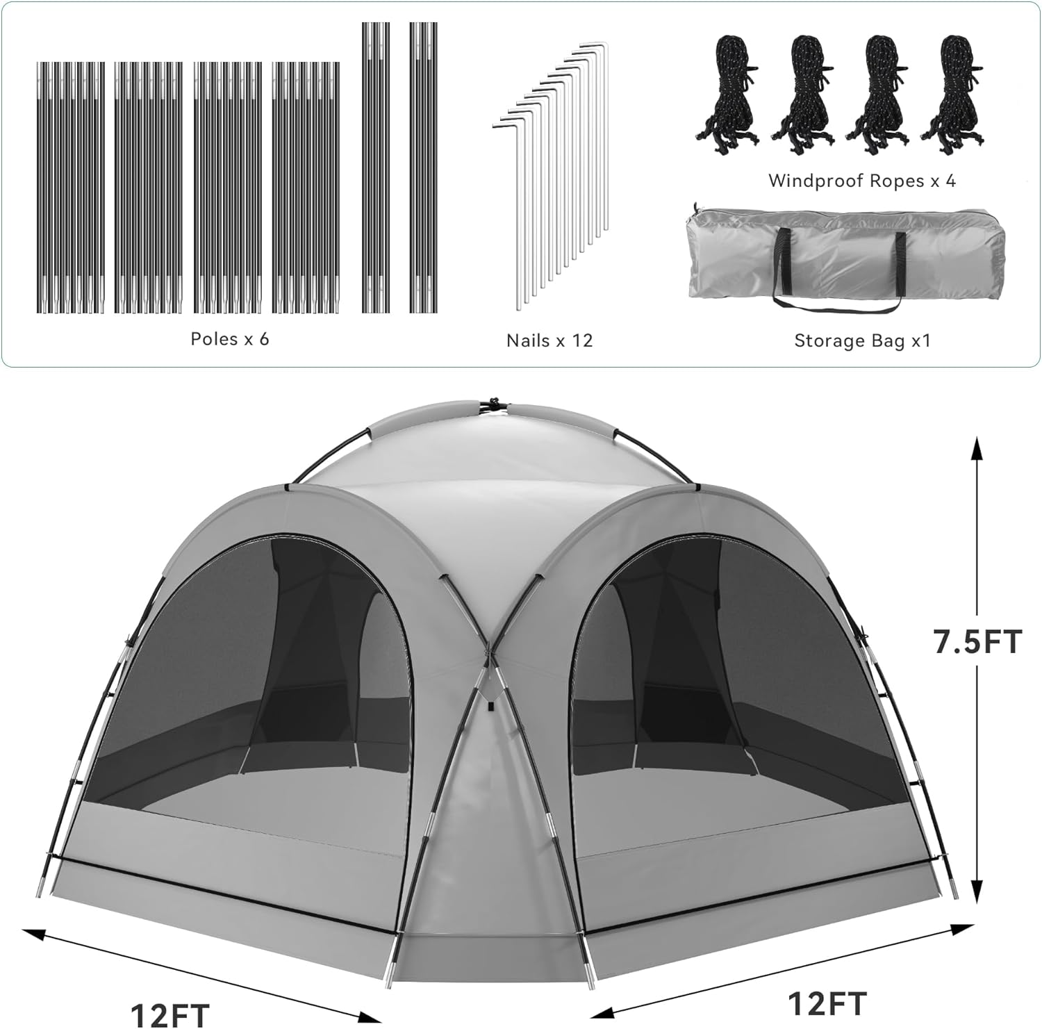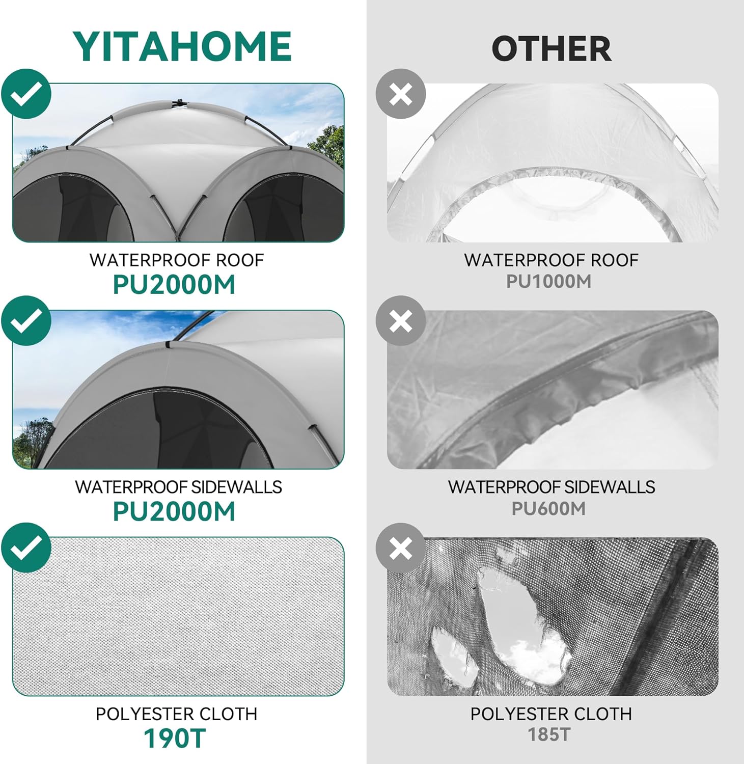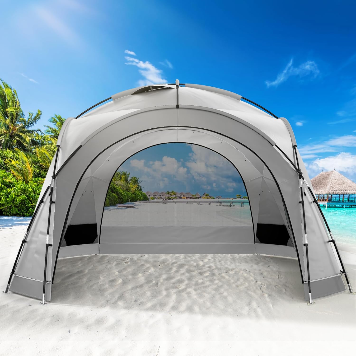 YITAHOME 10 Person Beach Tent Beach Canopy UPF50+ Dome Tent Rainproof Portable with 2-Pcs Side Walls for Camping Trips, Hiking, Picnics, Party, Backyard Sun Shelter 12 X 12ft (Gray)