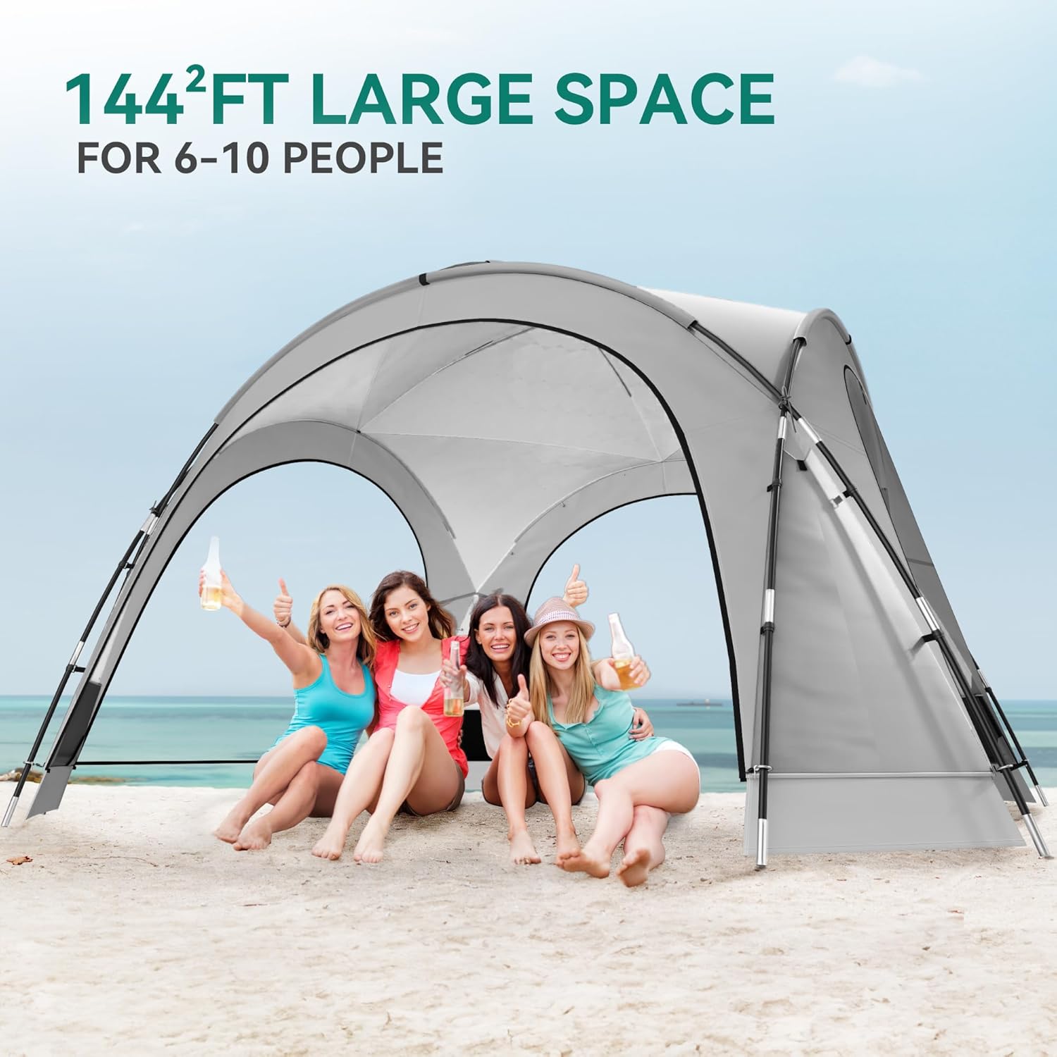 SPACIOUS SPACE- The beach tent canopy will cover an area of 144 square feet, accommodating up to 10 people for beach parties or outdoor picnics