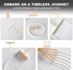 🌳【HIGH QUALITY MATERIALS】 – Our premium miniature zen garden decor kit are made of safe and durable materials, the wooden tray and garden tools are made of MDF board with smooth surface; white sand is quartz sand, hard and wear-resistant, zen rocks are real stones matches the plants, flowers and bridge which are made of durable polyresin material and expertly crafted for the entirely realistic look and utilization; Create a more natural beauty zen decor and to be proudly displayed anywhere.