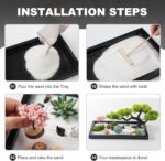 😊【RELAXING, THERAPEUTIC, MEDITATION】- This zen garden sand for desk is designed for relaxation and stress relief, enjoy sensory-soothing relaxation. Clear your mind, be present and ease stress and anxiety with calming landscaping activities. Arrange the stones, bridge, bonsai tree, and Pagoda to cultivate mindfulness, this little sandbox will give you a moment to relax and let your mind wander without leaving your desk, enjoy Zen time, offers a playground for your imagination and creativity.