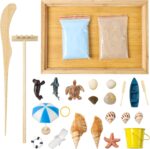 😊【RELAXING, THERAPEUTIC, MEDITATION】This desk zen garden sand is designed for relaxation and stress relief, enjoy sensory-soothing relaxation. Clear your mind, be present and ease stress and anxiety with calming landscaping activities. Arrange the screw, shell, starfish, sea lion ,shark, ship, paddle, and lying chair to cultivate mindfulness,this little sandbox will give you a moment to relax and let your mind wander sunshine beach without leaving your desk, enjoy Zen time.